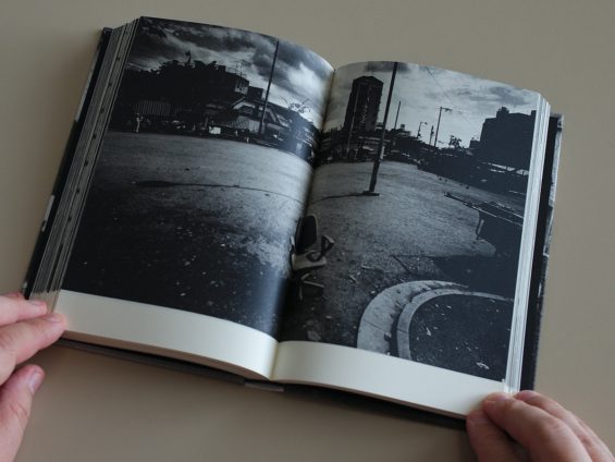 Como es habitual en el trabajo de Satoshi Machiguchi el diseño es impecable, muy táctil. Estamos acostumbrados a que el texto en los libros aparezca poco cuidado. Una vez elegida la tipografía, el tamaño y los márgenes de la página el texto cae a garrafón, ¡ahí va el Ebro! Curiosamente, en este libro parece que el texto haya merecido más atención que la fotografía. El texto que sería continuo en el original ha sido cuidadosamente fragmentado, y ajustado, jugando con la tipografía, de forma que cada fragmento en cada página funciona como una pequeña imagen. Las fotografías aumentan la tensión entre realidad y ficción. Da la impresión que Daido y Shuji hubieran deambulado juntos por las mismas calles, los mismos garitos, cruzándose con la misma gente…